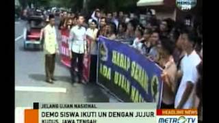 Kudus: Ratusan siswa SMAN 1 Kudus, Jawa Tengah, menggelar aksi demo menjelang pelaksanaan Ujian Nasional (UN) 2013. Mereka mengajak seluruh ...